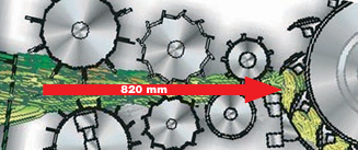 如何将最佳的切碎质量与最高的吞吐量相结合?明确的答案:通过采用具有大滚筒和多把刀片的最佳切碎总成!在这方面,BiG X同样是典范:切碎滚筒宽800毫米,直径660毫米,并标准配备V形排列的刀片。可选配三种不同的切碎总成,分别配备20、28或40刀滚筒。结果是:在仅5毫米的短切段长度下,每吨收获作物可节省高达16.4%的柴油消耗!*