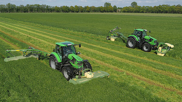 配备齿杆式摊晒机(CV)或辊式摊晒机(CR),实现快速均匀的凋萎
