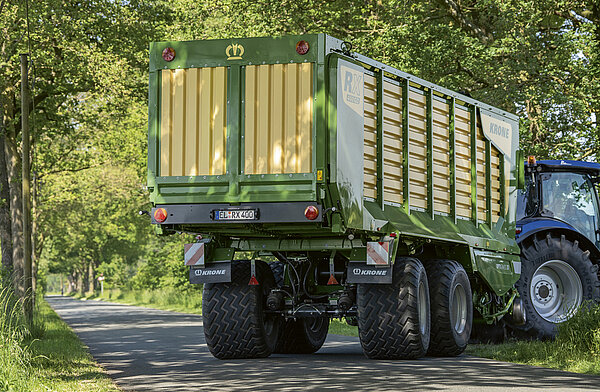 RX 是 KRONE 最新一代的饲草车系列。提供 33 至 40 m³ 的容量,这些机器服务于两种用途——既可作为自装填式及可控卸料的饲草车,也可作为服务于饲草收割机的运输车队中的青贮饲料挂车。可选的 30.5 英寸轮胎提供更高的承载能力、更轻松的牵引、更好的土壤保护和增强的道路安全性。这种多功能性与出色的可靠性和效率相结合,使 RX 成为一台生产力极高的机器。