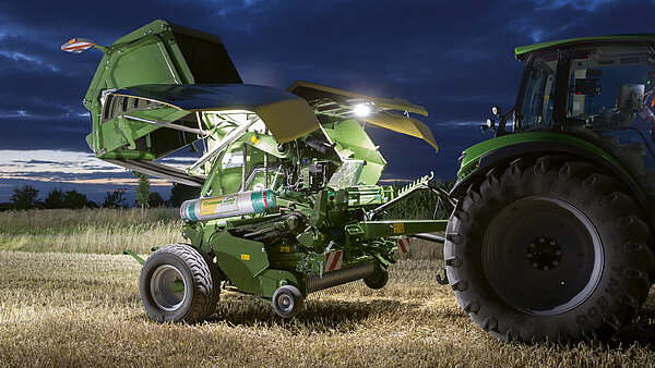 此套件增加了舒适性,包括用于所有维护点的 LED 工作灯、面板下方的反光条以及后灯。这些灯在夜间更换网绳卷和清洁机器时非常有用。同时,它们提高了机器周围的能见度以及田间的总体安全性。