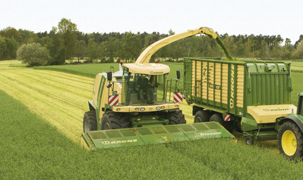将EasyCollect 753与BiG X系列田间切碎机配合使用,可带来更多优势:例如,割台采用无级液压驱动。这也允许可变调节收集器速度,从而实现优化的物料流。此外,按一下按钮即可实现收集器速度对行驶速度的自动匹配。除此之外,收集器在地头会自动反转(自动自清洁)。