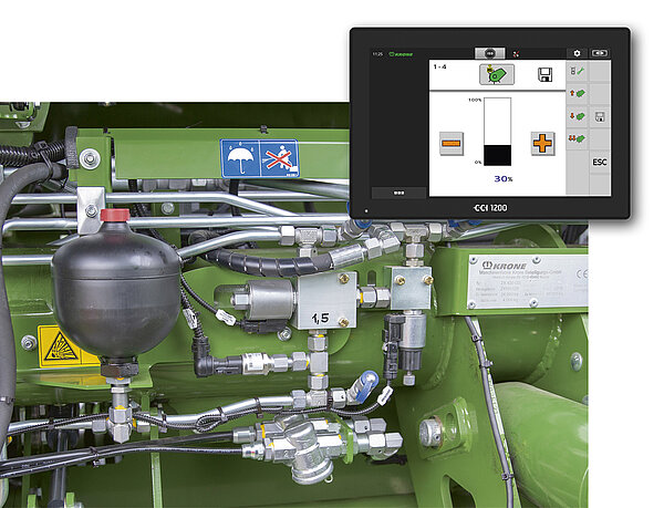 氮气阻尼器为捡拾器提供电液悬挂,以实现更好的土壤保护。该系统允许操作员在驾驶室内和行驶中设定悬挂压力。