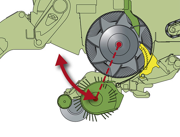 配备单独的弹簧保护装置,每个刀片在异物通过后会缩回并自动摆回原位。触发力可在驾驶室内可变设定,并可针对特殊条件进行调整。