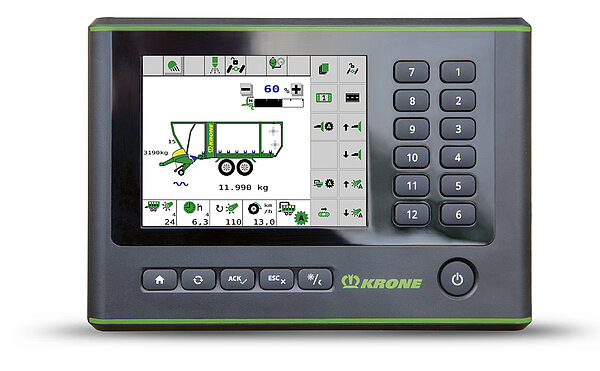 RX 可以选择配备 KRONE Smart-Connect 远程信息处理单元。该接口与 GPS 和 WLAN 功能一起用作数据管理的基础。远程信息处理允许管理人员跟踪饲草车,记录所有主要数据并将其传输到办公室。这是现代化的耕作方式。
