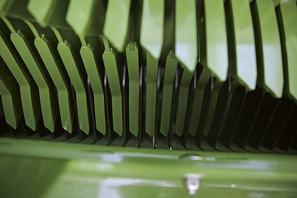 作物无法逃脱刀片,因为刀片与输送转子齿杆的宽支撑面及其不对称尖端之间的距离非常小。结果是:贯穿始终的完美切割质量,无挤压,无糊状化。