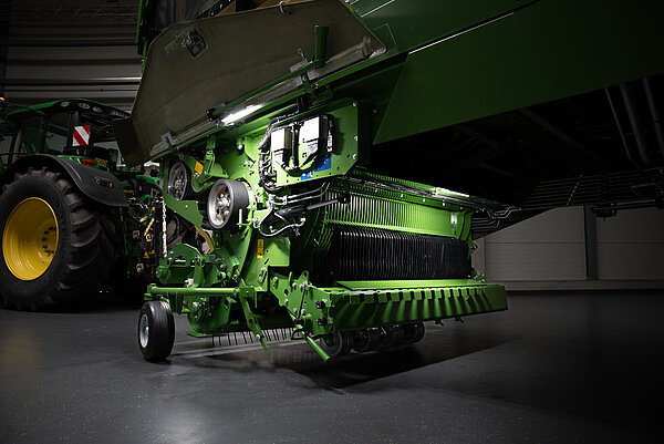 两侧的两条 LED 灯条为作物喂入区域提供最佳照明。它们为捡拾器前后提供了充足的照明,并且由于其漫射光,营造出舒适的工作氛围而不刺眼。
