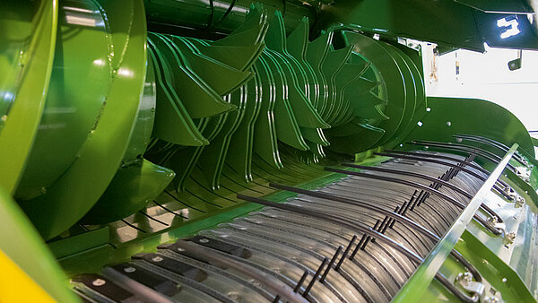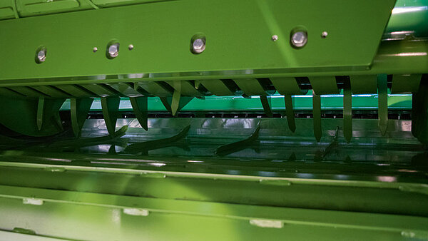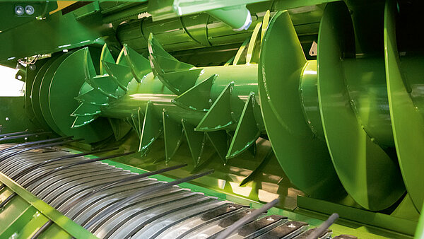 双弹齿将物料以稳定的流拉过刀片,防止任何茎秆滑过,并带来更高的草捆重量,因为切割后的物料可以打捆成更高的密度。螺旋设计确保切割系统没有峰值负载,实现平稳运行和安静工作。