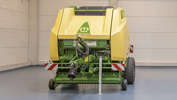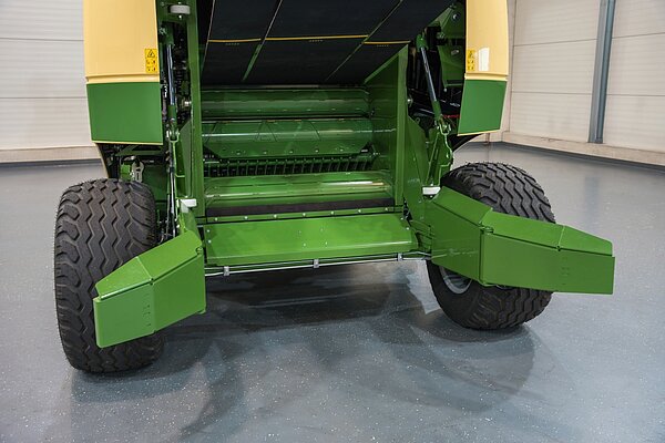 VariPack 标配机械支撑架。这使得机器停放时安全稳定。在收获大容量草条时,它可以摆动到一侧,提供充足的离地间隙。