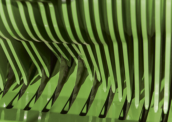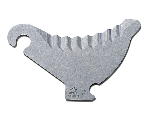 刀片具有长而弯曲的切割刃,可在草料被拉过时实现特别省油的切割。其波浪形边缘可精确切割所有饲草类型并保持锋利更长时间。刀片盒中的所有刀片都相同且可互换。