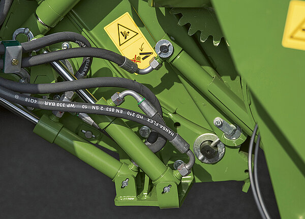 配备液压刀片组控制系统的机器能以适当的控制和精度液压伸缩刀片。这确保了刀片进入和离开作物流时的精确控制,是优化机器整体性能的又一细节。