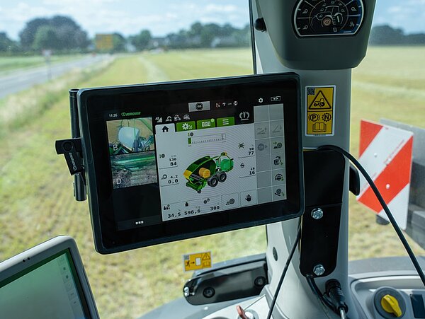 为了提高可视性,科罗尼圆捆打捆机可选配数码相机。草捆室内的摄像头可监控捆扎循环,而后部的第二个摄像头可监控裹包过程或用作后视摄像头。切换是自动且事件驱动的——以确保在每种应用中获得最大的控制力和安全性。可与 CCI 终端或 7 英寸监视器理想结合——确保在任何情况下都实现完美控制。