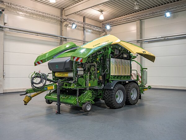 ComPack Pro 不仅以其高打捆性能和压实度令人印象深刻,还以其精致的设计令人赞叹。所有维护点都易于接近——集中润滑和主动链条张紧将工作量降至最低。该机器可选配集成式青贮添加剂单元,确保精确计量,从而持续支持饲料质量。