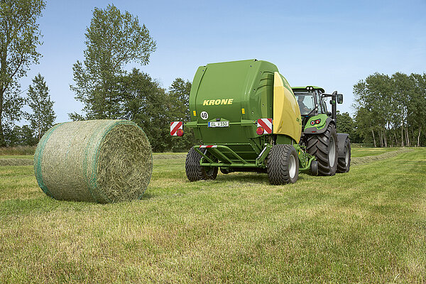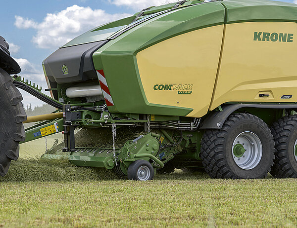 配备变量草捆室的 ComPack V 150 XC Pro 允许驾驶员在拖拉机驾驶室内的操作终端上无级调节所需的草捆直径,从 1.00 米到 1.50 米。这显著扩大了其应用范围。较小的草捆尺寸通常在青贮中更受欢迎,而较大的草捆在干草和秸秆中更为典型。